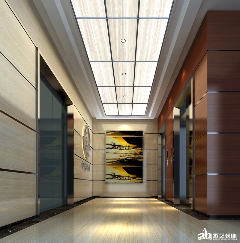 中鐵港航局辦公室設計裝修--電梯間效果圖設計