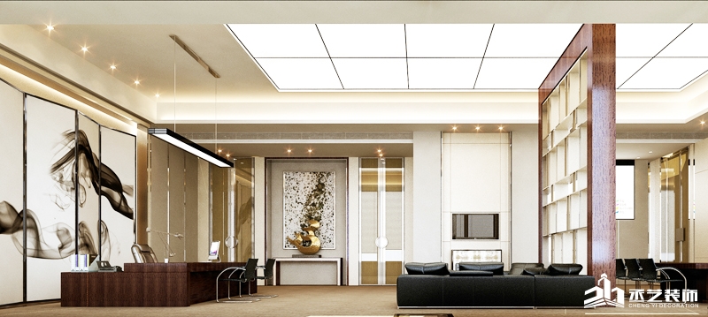 本案辦公室裝修設計是結合建築的特點,並融入室內環境當中,結合當地人文地理,與周邊環境處理融洽;辦公室設計裝修彰顯現代建築的整體性、統一性,同時塑造靈動的空間,營造簡約、莊重、大方的現代中式設計理念
